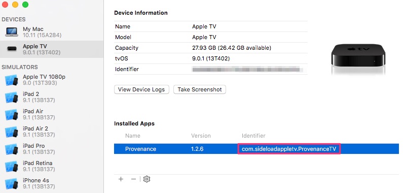 Click on Apple TV and your Bundle Identifier will be displayed under Installed Apps