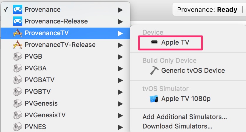 12. Change to ProvenanceTV and select Apple TV