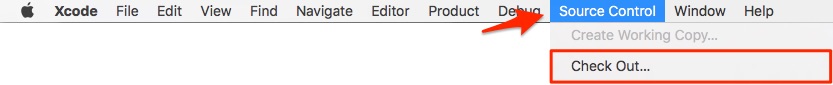 3. Open Xcode and go to Source Control > Check Out